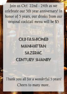 In the Spring of 2021, The Bourbon Affair added a new outdoor dining space. We now have a great Patio in the back to accommodate 60 guests and additional seating on the sidewalk.